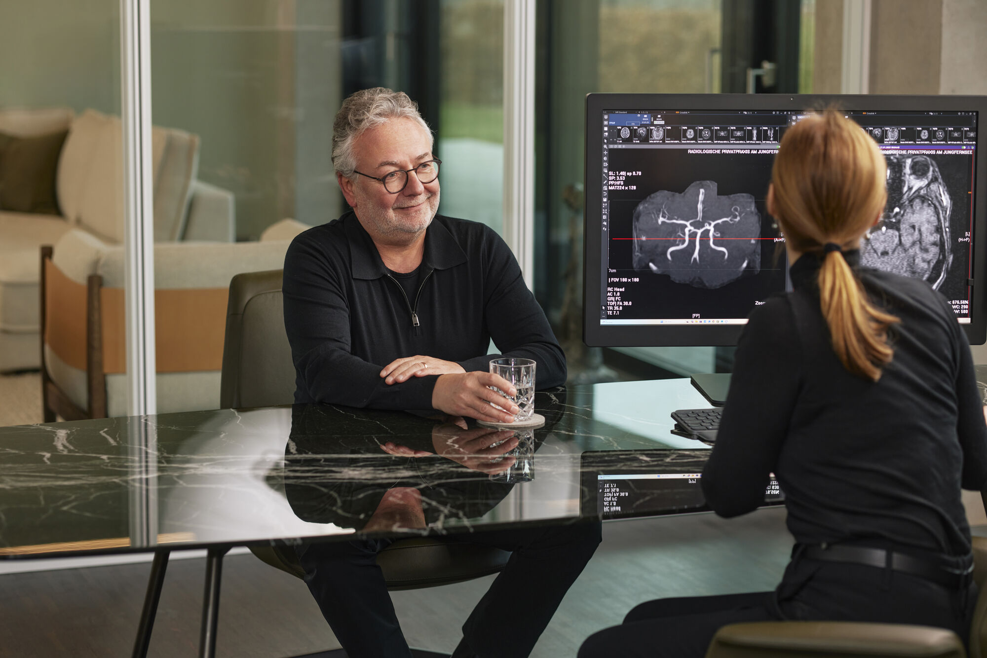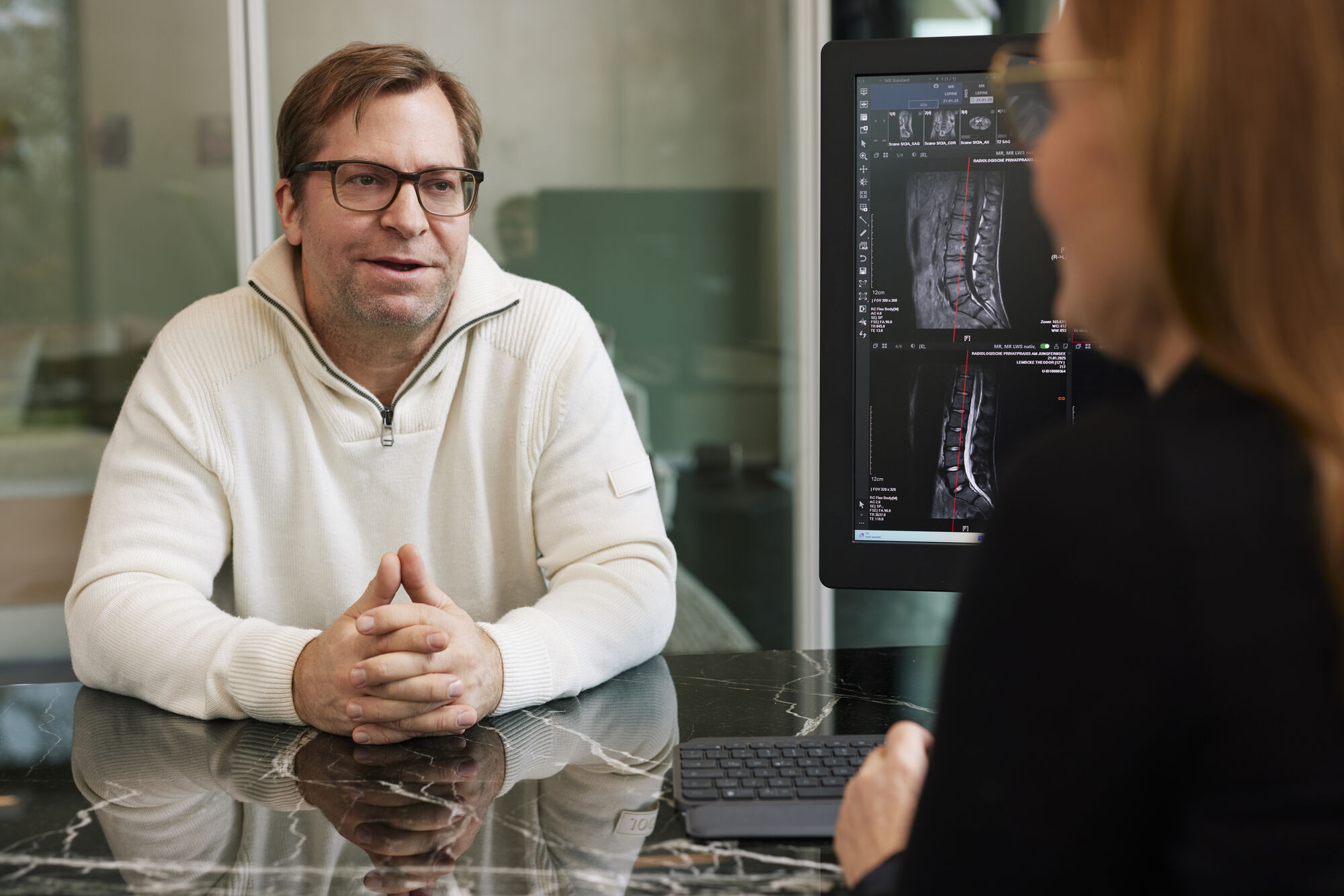 Begleiten Sie uns auf einem visuellen Rundgang durch unsere radiologische MRT-Praxis am Jungfernsee! Entdecken Sie das angenehme Ambiente unserer modernen und hellen Räume und machen Sie sich ein erstes Bild unserer hochmodernen Technik. Wir freuen uns darauf, Sie bei uns zu begrüßen!